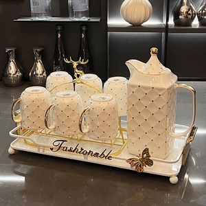 إبريق شاي من السيراميك الأبيض بجودة عالية من maymai طقم مع صينية