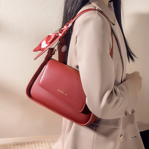 กระเป๋าสะพายไหล่สำหรับผู้หญิงทำจากหนัง PU กระเป๋าแมสเซนเจอร์กระเป๋าสะพายไหล่สำหรับผู้หญิงมีเอกลักษณ์แบรนด์สีแดงไม่ซ้ำใคร